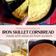 Cooking cornbread in a cast-iron pot ensures a crusty edge on this classic Iron Skillet Cornbread. The flowerless batter made with olive oil and no sugar is baked, then slathered with butter and eaten alone or alongside a pile of purple hull peas, maybe. This quick bread is delicious any way you serve it!