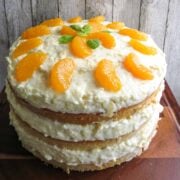 A delicious moist refrigerated cake made with mandarin oranges topped with the creamiest pineapple and coconut frosting.