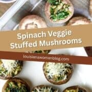 A deliciously healthy snack, side dish, appetizer, or meatless dish is what you'll find in these Spinach Veggie Stuffed Mushrooms. They bake into little crispy-topped peppery bites. So easy to prepare! Just chop, sauté, stuff, and bake.
