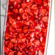 - Pour strawberry jello topping onto the filling, spreading evenly.