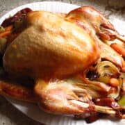 Soaking a turkey for hours in a brine mixture of water, seasonings, and herbs brings excellent results. It may take a little pre-planning, but it’s simple in order to get tender, juicy, flavorful meat.
